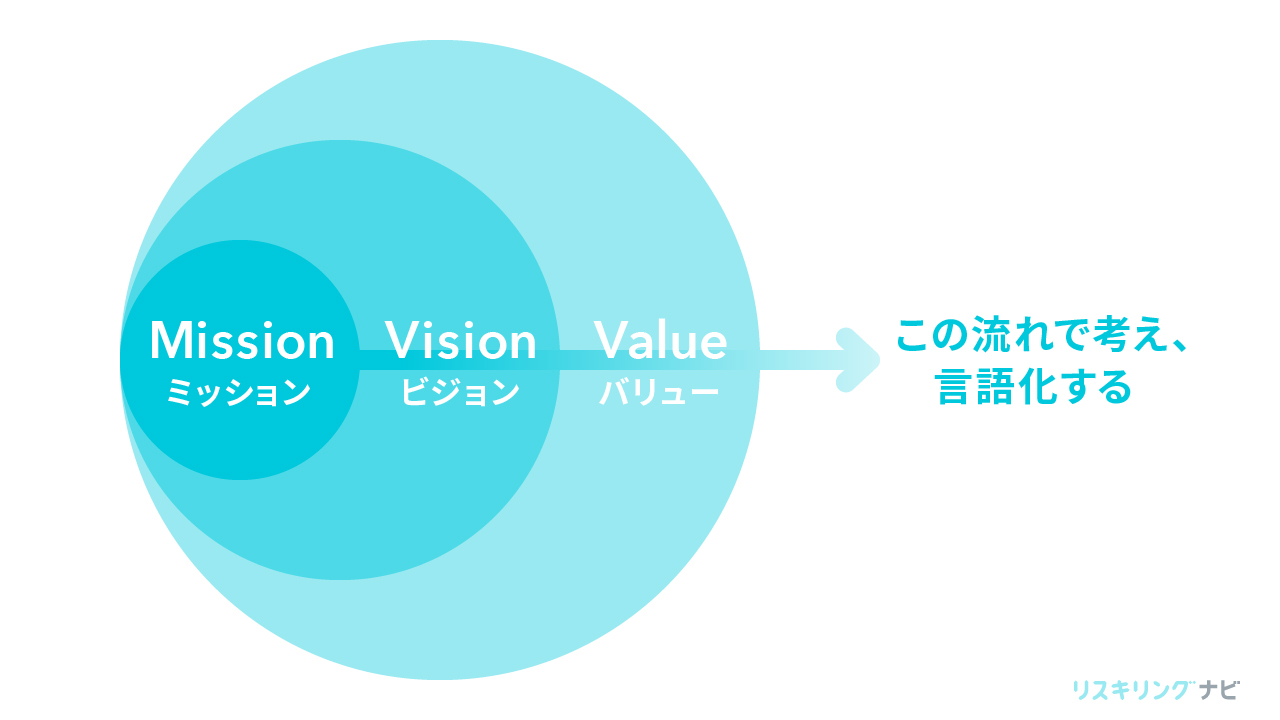 ミッションからビジョン、バリューの流れで考え、言語化することで、組織として同じ方向を向けるメリットがあります。