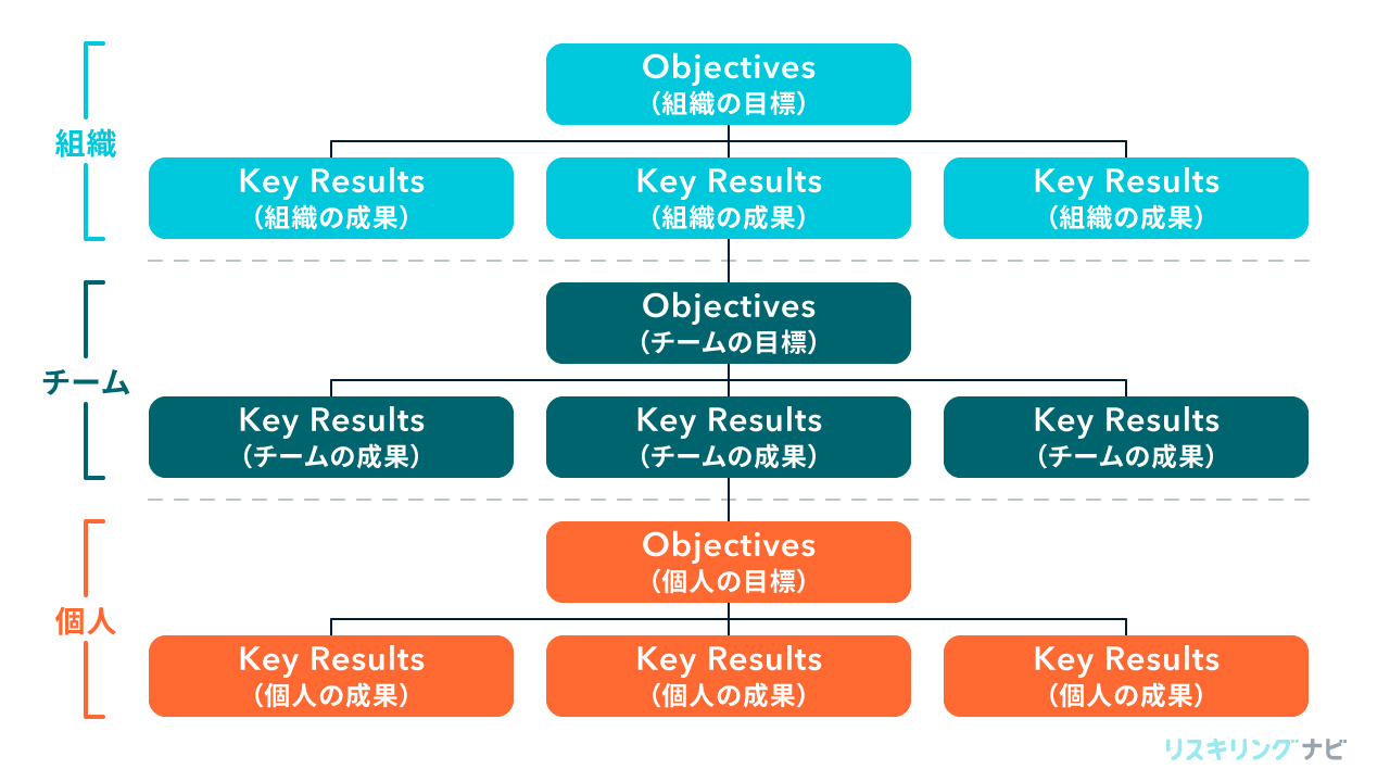 企業としての目標を部門ごとに落とし込み、さらに部門に所属している従業員ごとに落とし込んで、目標として設定する手法です。設定する目標を具体的にするのはもちろんですが、プロセスも企業側と従業員側の双方でコミュニケーションを取り、最適化することが大切になります。コミュニケーションを取ったうえで目標が明確になるため、評価に対する納得感も得られます。