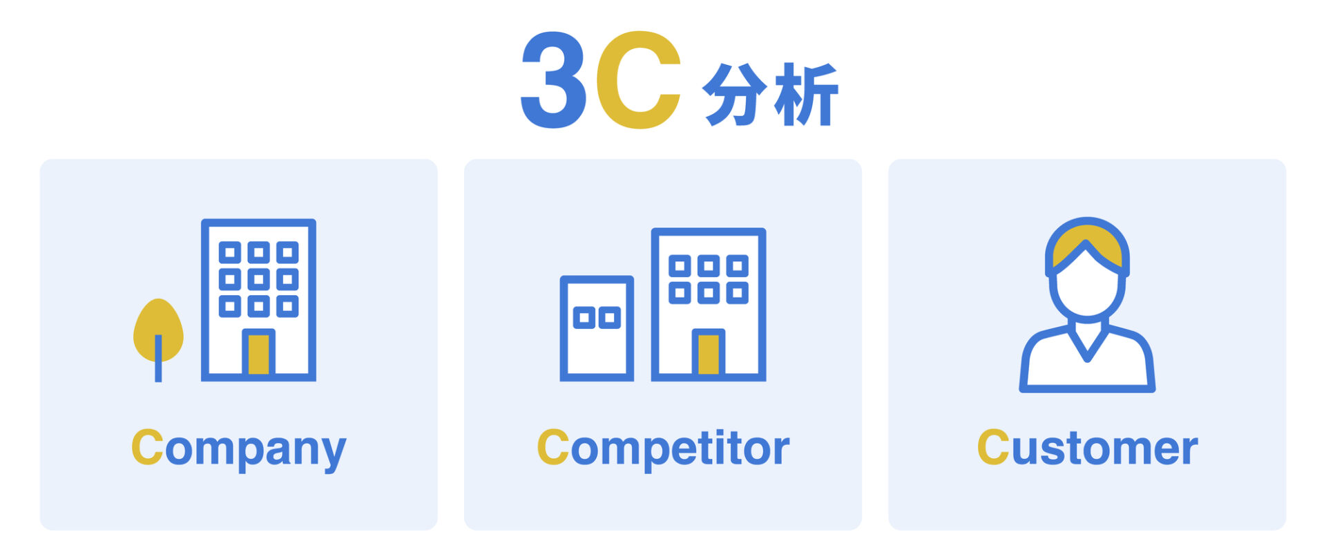 3C分析とは、「Customer (顧客)」「Competitor (競合他社)」「Company (自社)」の3つの視点から分析を行い、自社の立ち位置を明確にするものです。外部環境、内部環境のそれぞれを分析とすることで、経営戦略に活かしていきます。