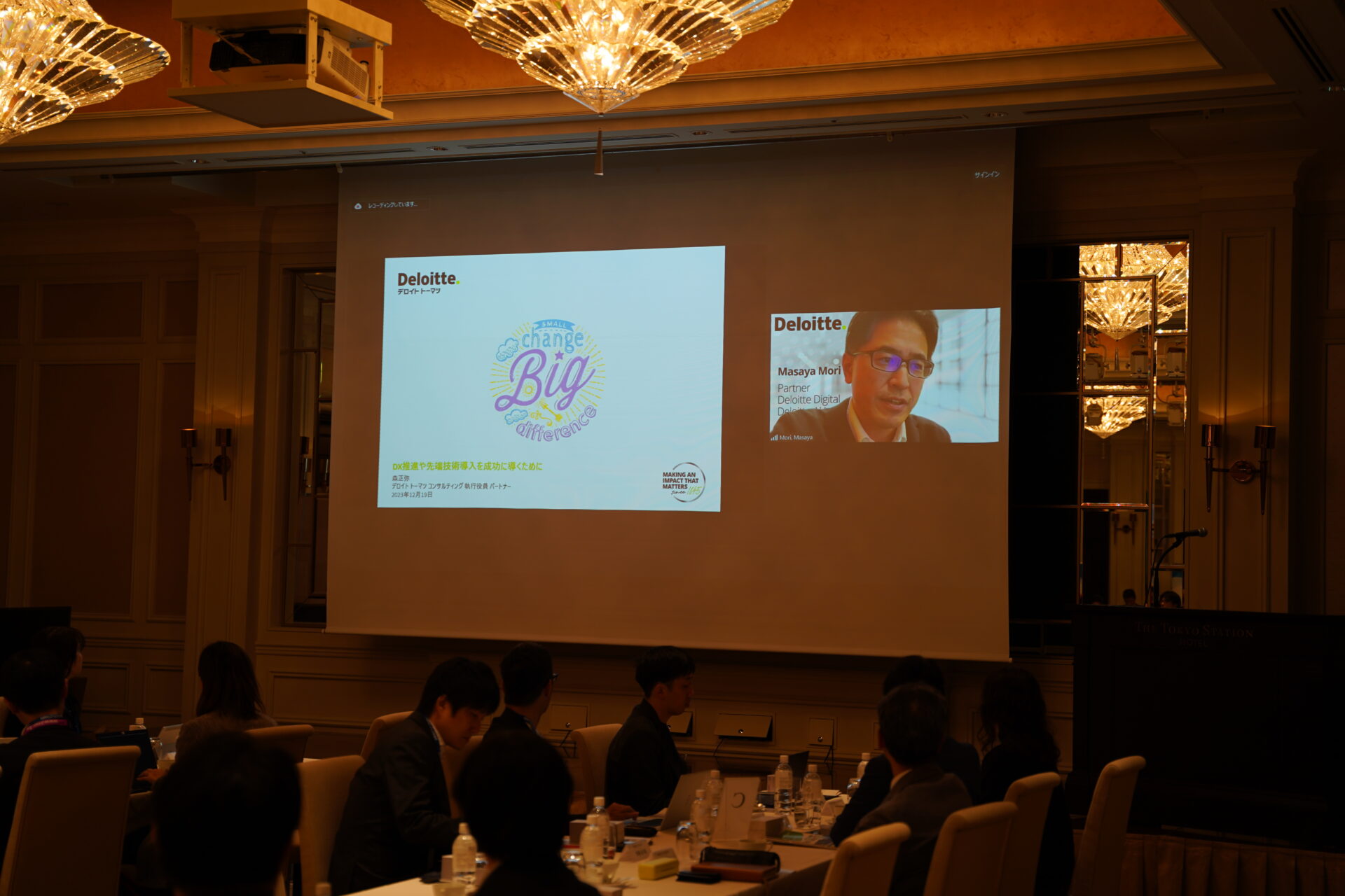 基調講演は、デロイトトーマツ コンサルティング合同会社 執行役員 パートナーである森 正弥氏から「日本企業がDX推進や先端技術導入を成功に導くために大切なこと」をテーマに行われました。