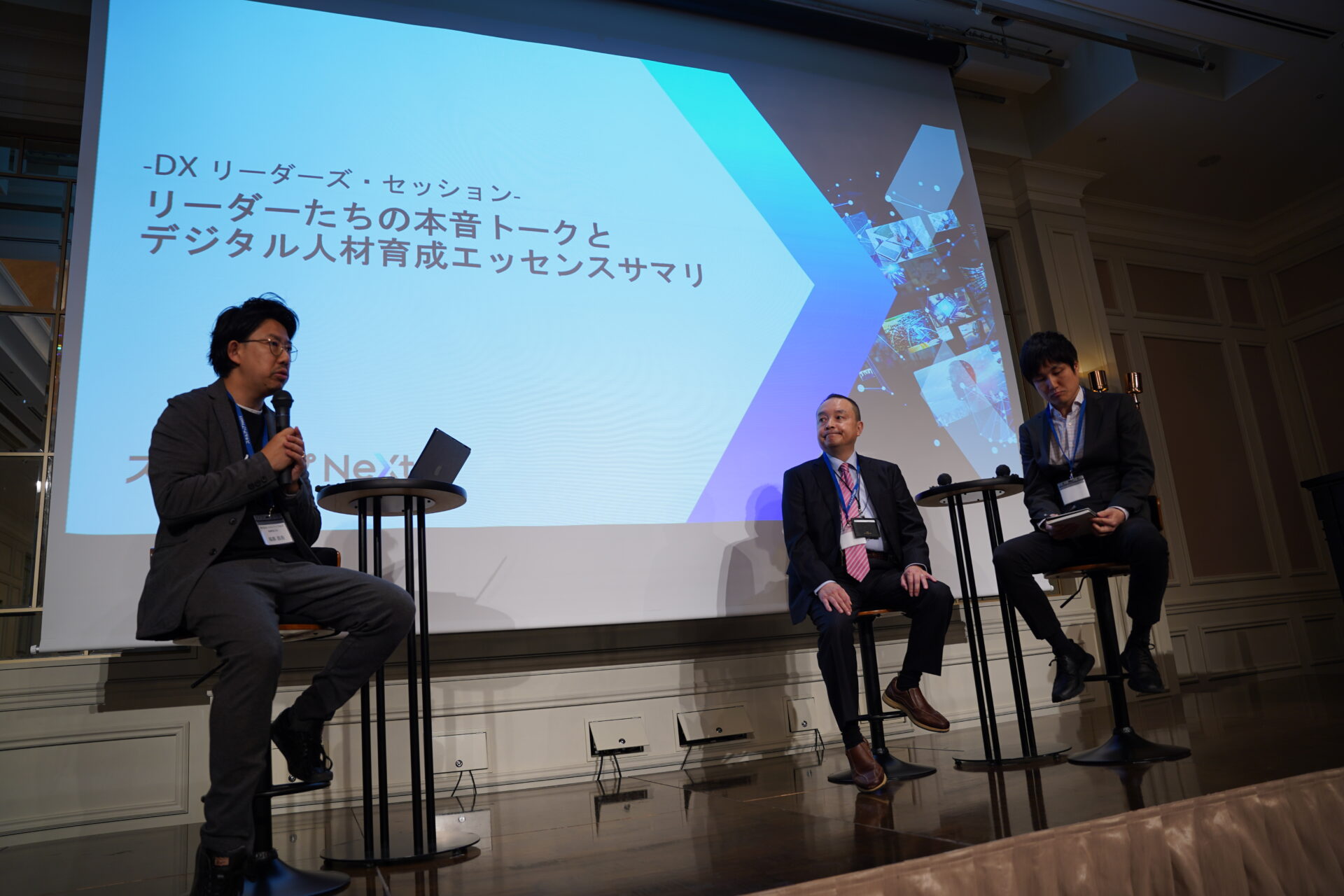 続いて取り上げるのは「DXリーダーズ・セッション」です。現場で人材育成の推進を担うリーダーの方々に登壇いただき、「リーダーたちの本音トークと人材育成のエッセンスサマリ」をテーマにしたパネルディスカッションが行われました。