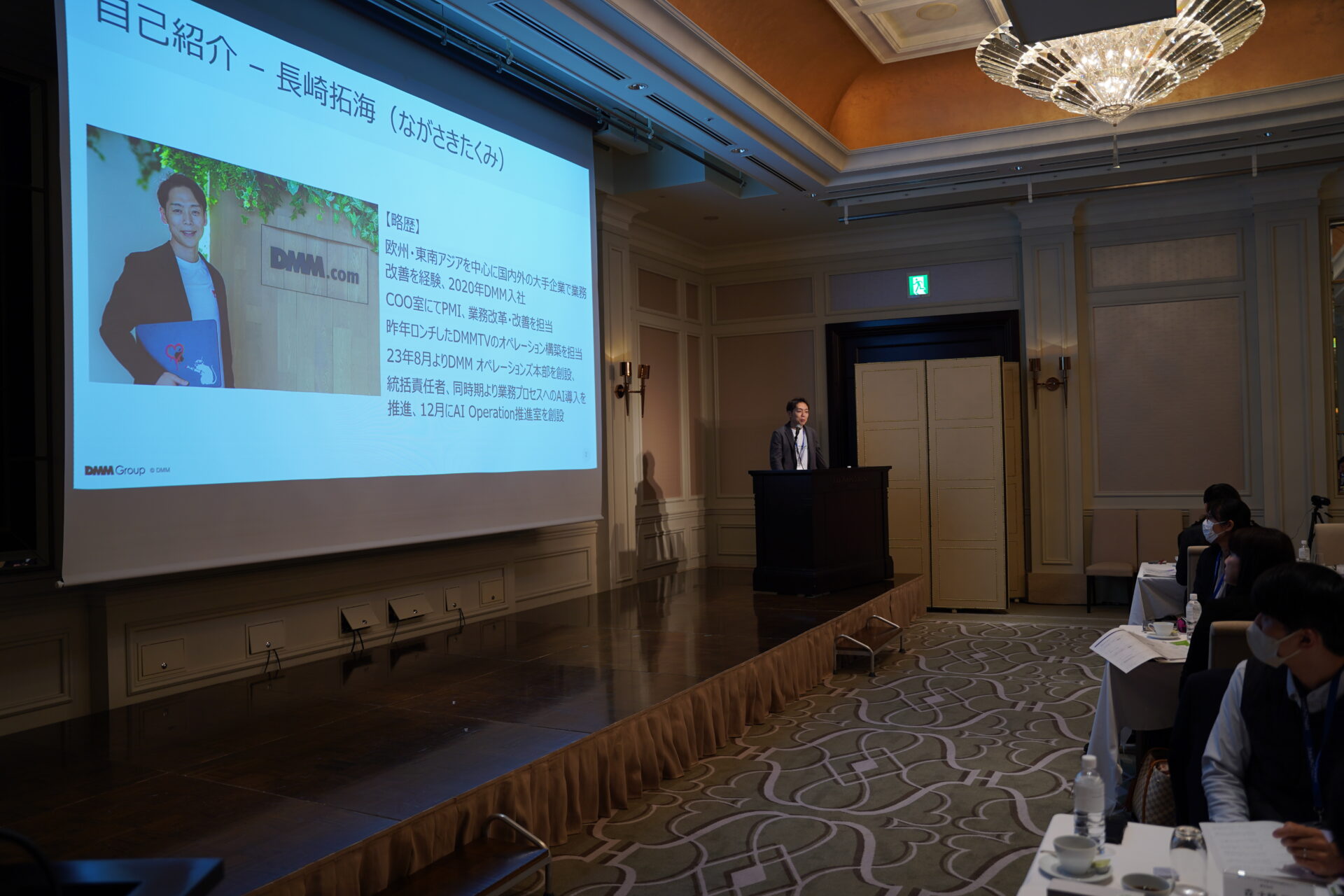 ご登壇いただいたのはDMM オペレーションズ本部統括部長 AI Operation推進室 室長 長崎 拓海氏 です。